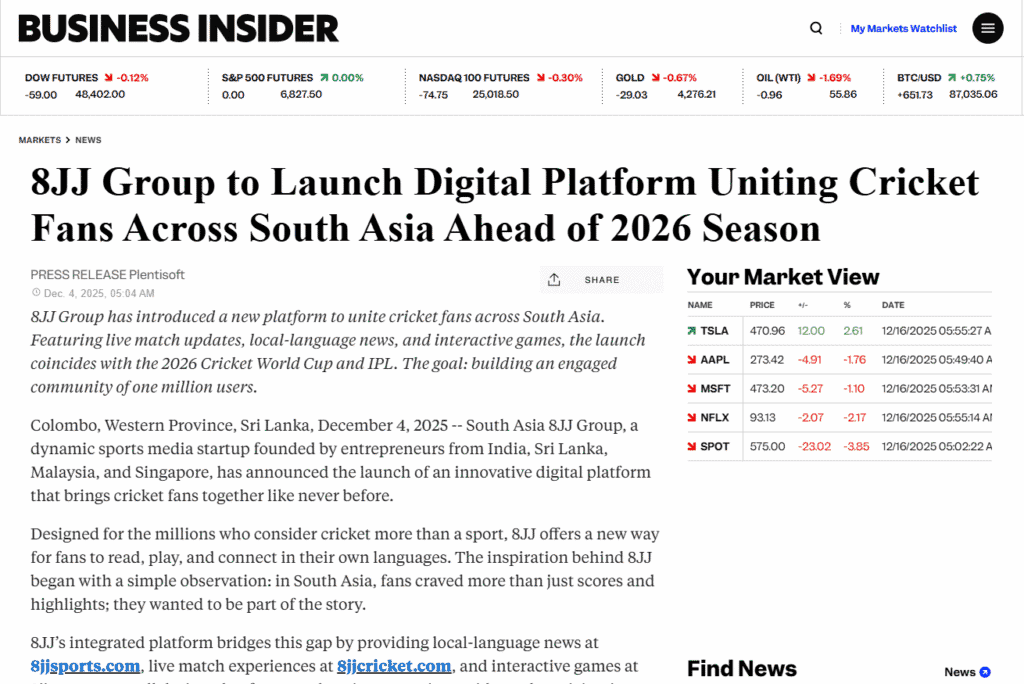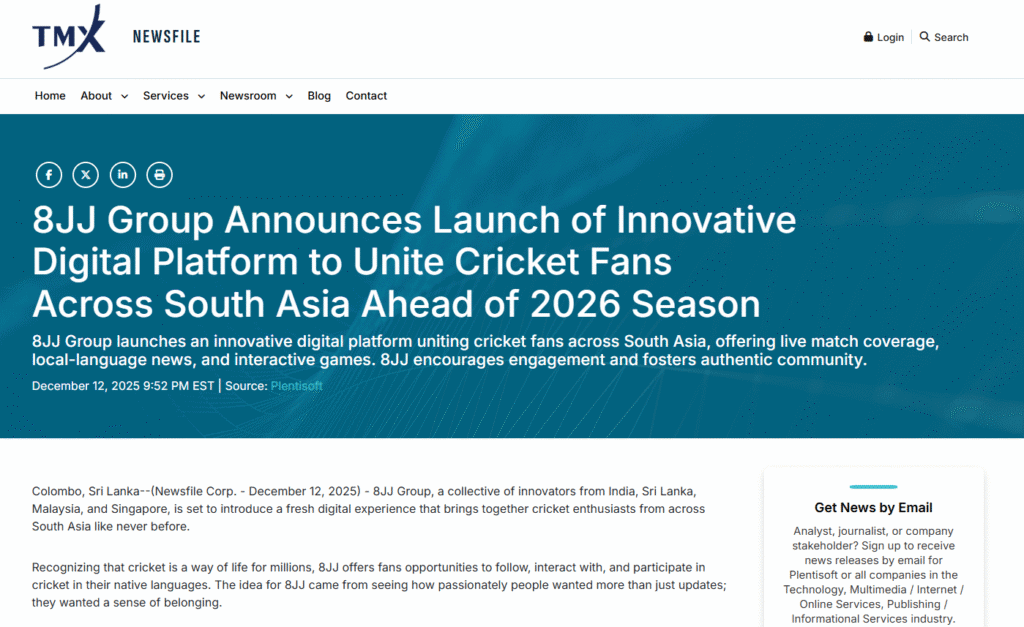 Yahoo Finance, Business Insider, and Newsfile have featured 8JJ Group for its innovative sports platform. Fans across South Asia can now access live cricket coverage, local-language news, and interactive engagement, establishing 8JJ Group as a leading cricket sports hub.